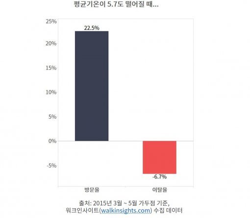 ZOYI Corporation, an offline retail customer analytics firm, analyzed store visit rates and behavior patterns across major street-level retail locations over the past three months. The data showed that for every 5.7°C drop in average temperature, store visit rates rose by 22.5%. At the same time, the share of passersby who left within one minute of entering fell by 6.7%, suggesting that the cold weather was driving people off the street and into stores.